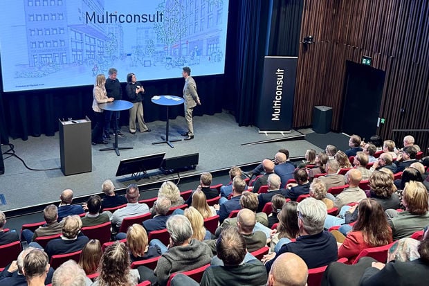 Ingunn Andersen Randa fra OBOS, Geir Haaversen og Kristin Augestad, ledet av Lars Nermoen, kommunikasjonsdirektør i Multiconsult Norge.