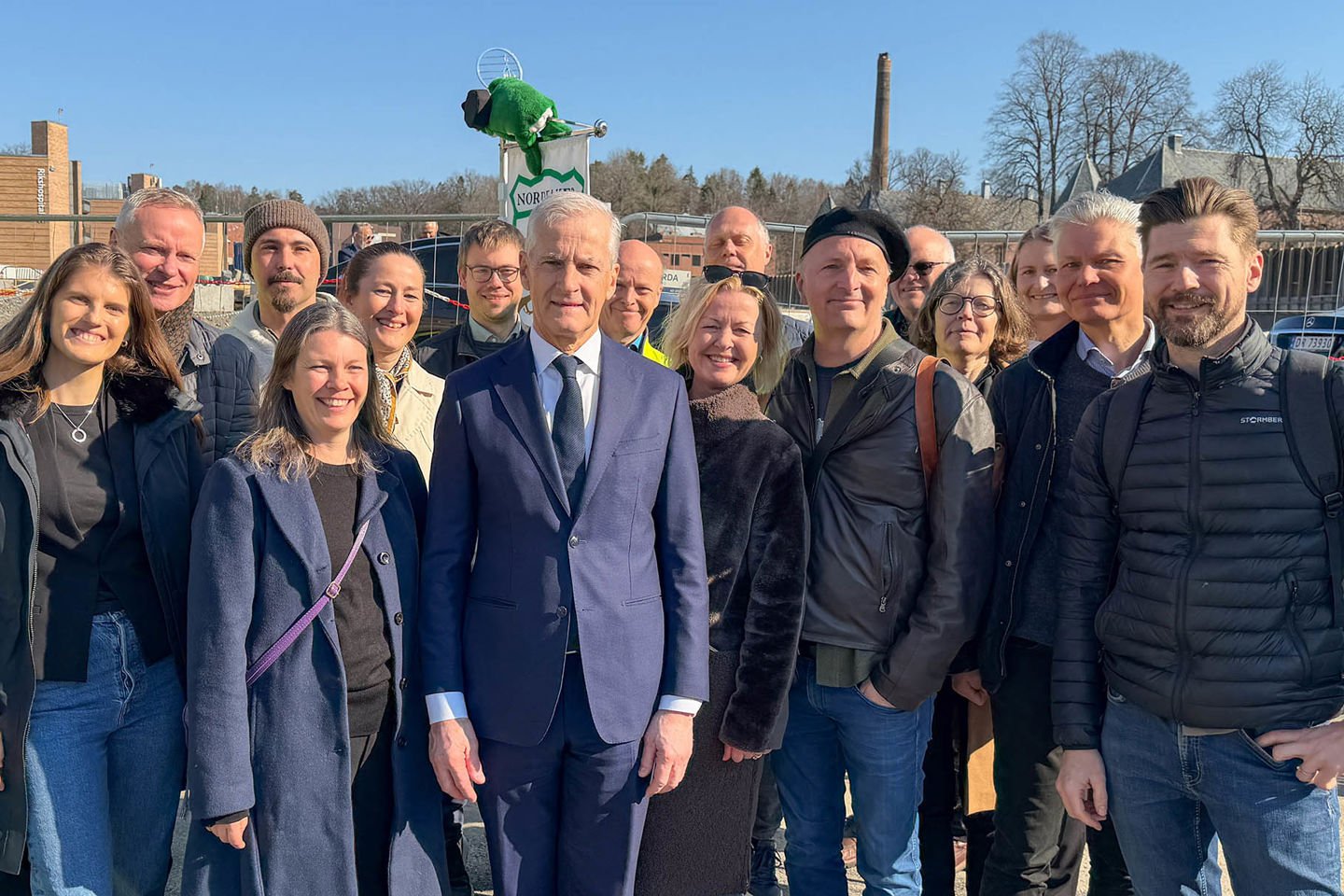 Statsminister Jonas Gahr Støre avduket grunnsteinen.