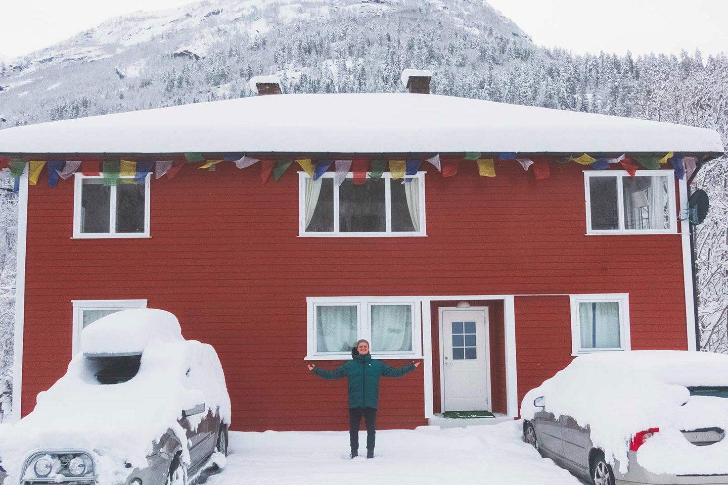 – For tiden bor vi en halvtime inn i Jostedalen, i en bygning som heter Perbui og som tidligere pleide å være butikk. En kompis jobbet som brefører i området, og vi fikk mulighet til å bruke huset, sier Vetle Birkeland som til daglig jobber i Multiconsult.